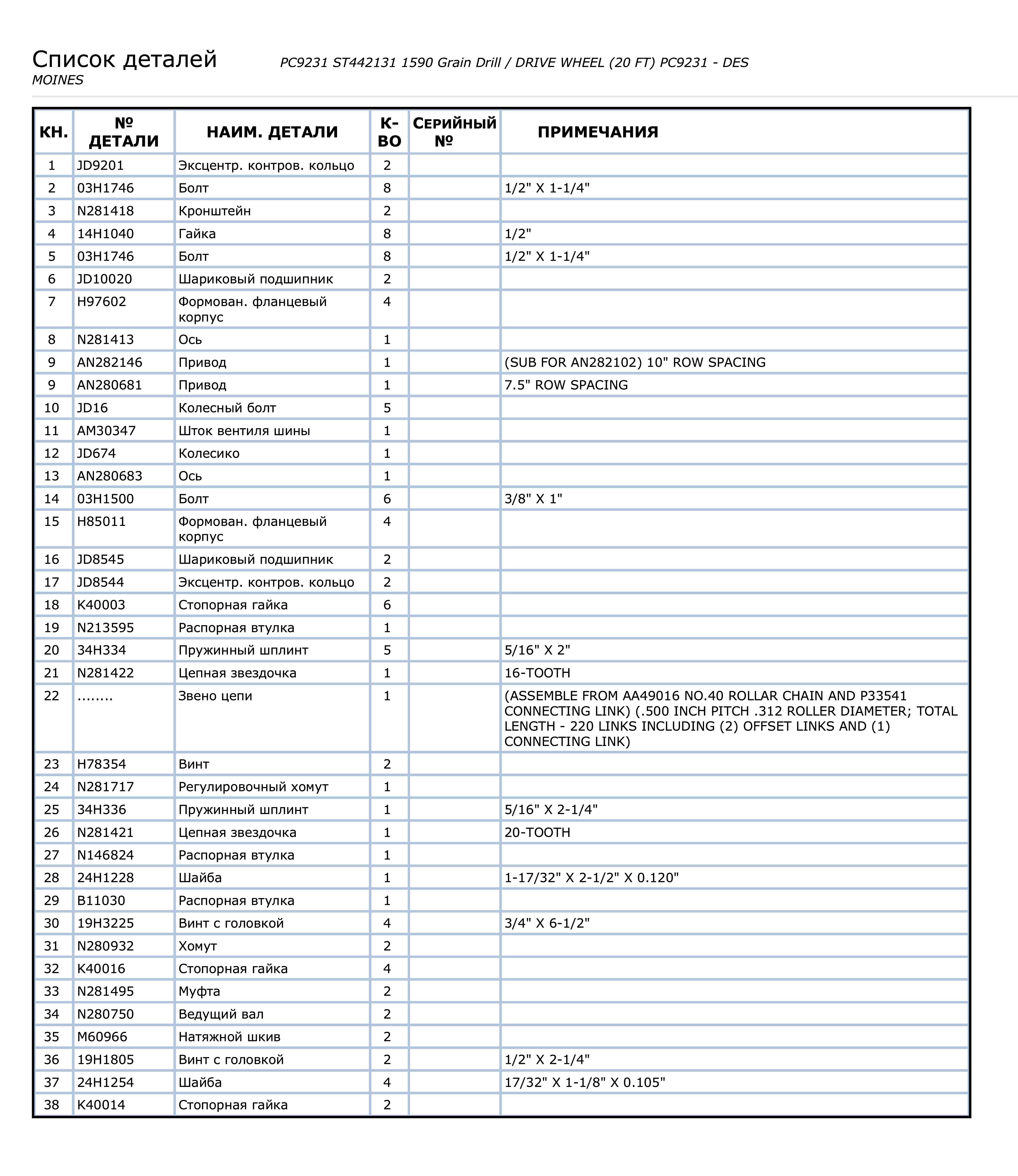 - Страница с каталожными номера из каталога запчастей сеялки Джон Дир 1590