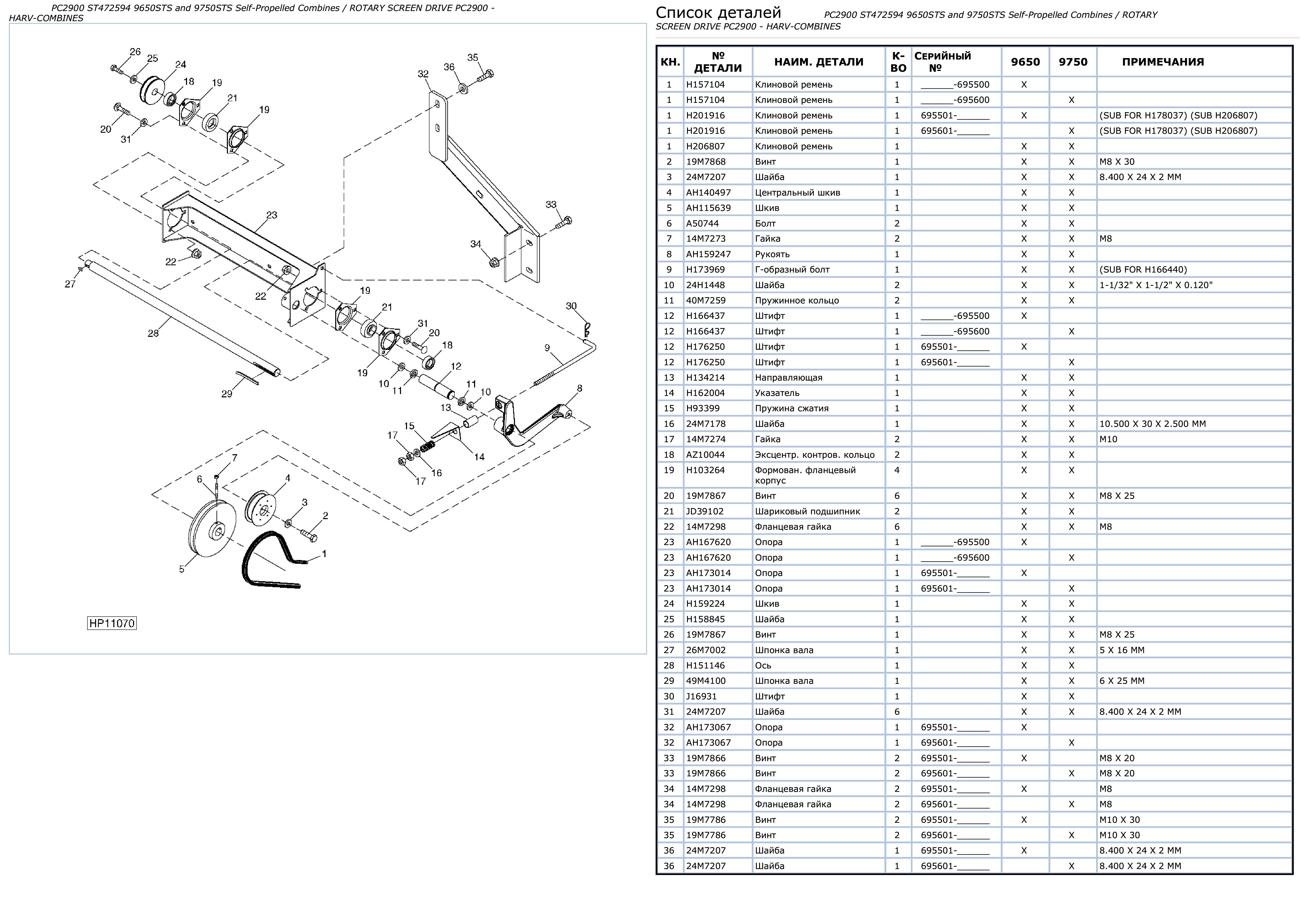 - Страница каталога запчастей комбайна John Deere 9650STS