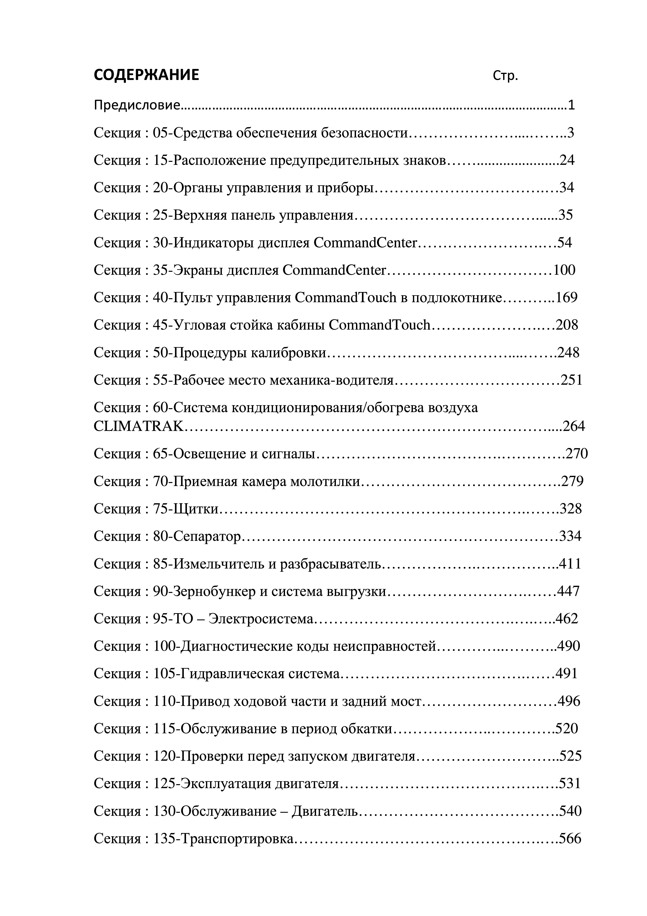 - Первая страница содержания инструкции Джон Дир 9770 STS