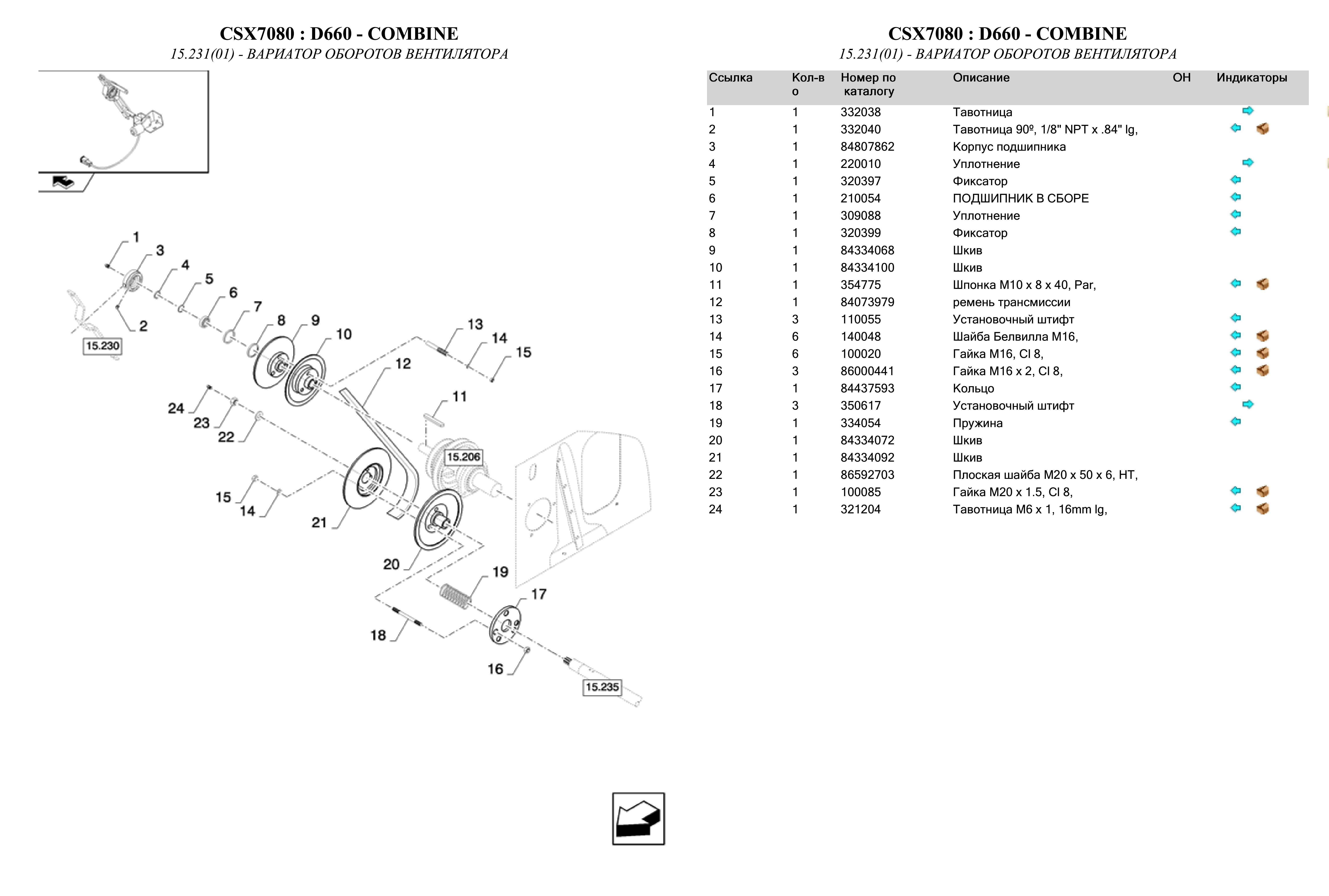 В каталоге собраны абсолютно все запчасти из которых состоит комбайн New Holland CSX 7080. Подшипники, фильтры, ремни, болты, гайки, сегменты, ножи, пальцы и т. д. Для всех систем комбайна жатка, наклонная камера, система обмолота, система очистки и сепарации, двигателя, кабины, измельчителя, шнеков, траспортеров, приводов, кабины, ходовой части и пр.