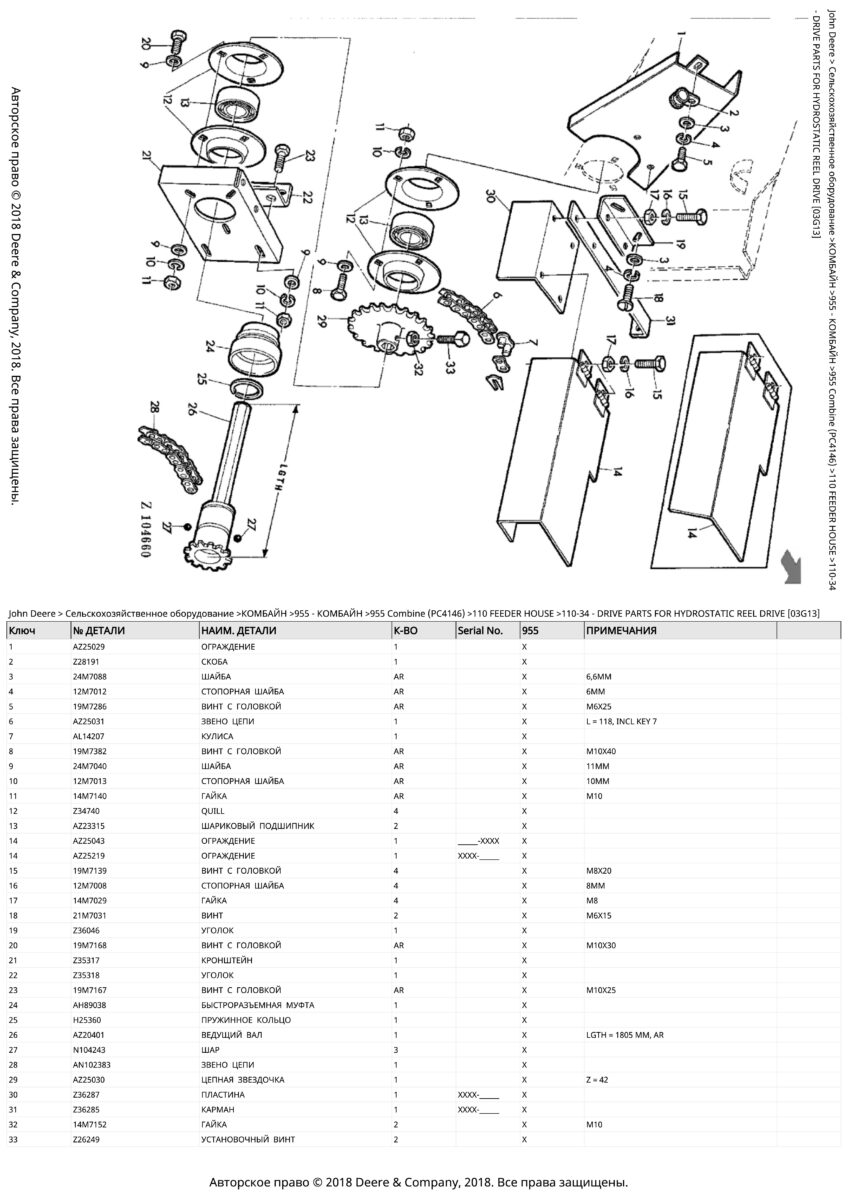 Описание каталога оригинальных запчастей комбайна Джон Дир 955:
