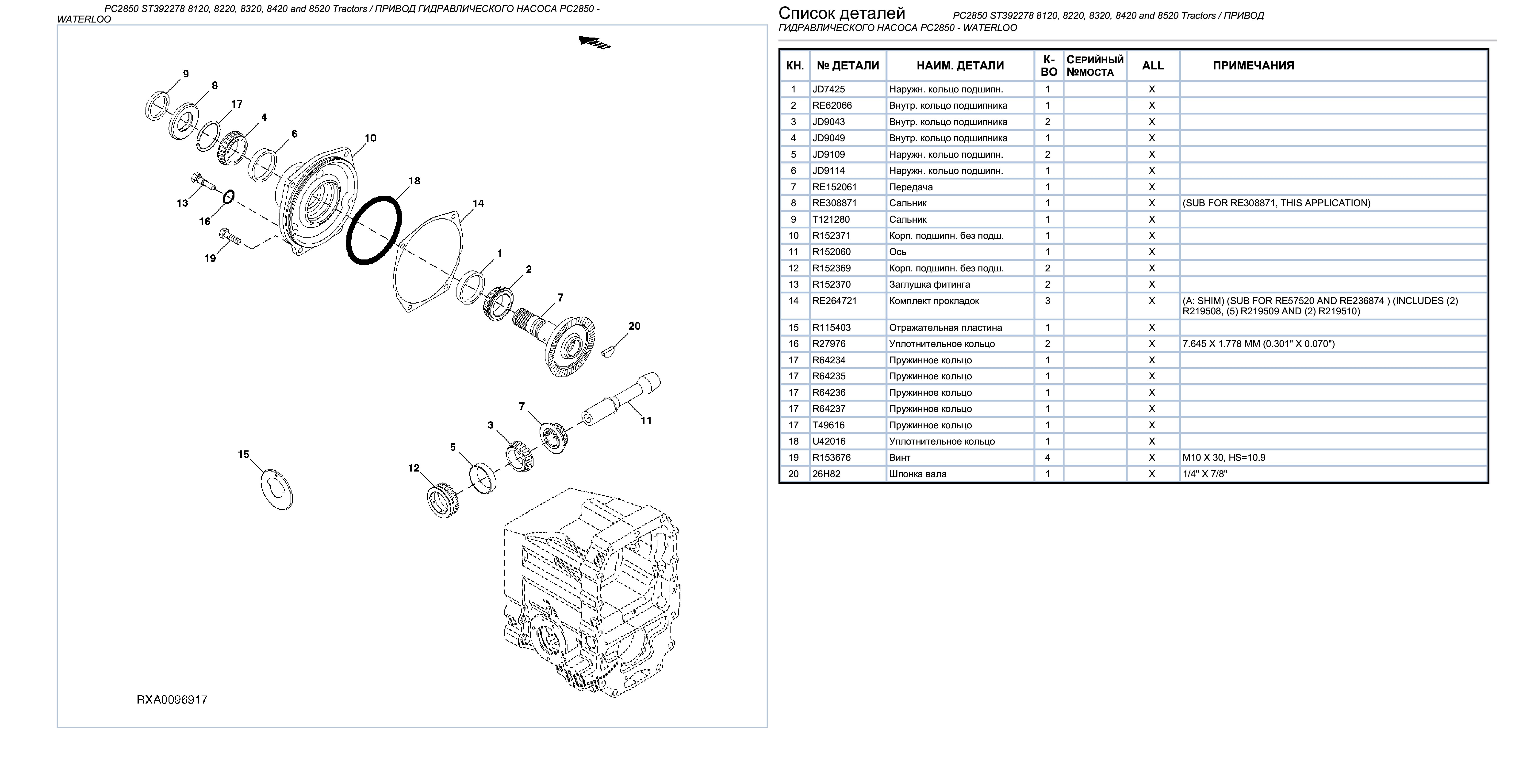 Подробные чертежи деталировки узлов можно использовать как инструкцию по ремонту трактора John deere 8520. Они служат отличным подсказчиком в процессе сборки и разборки.